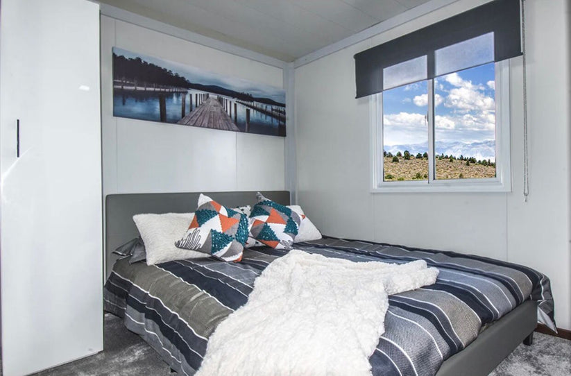 Sistema de chasis: estructura de acero + tablero de fibra de cemento de 18 mm de espesor + piso laminado de PVC de 2 mm de espesor (inserto de vidrio opcional)